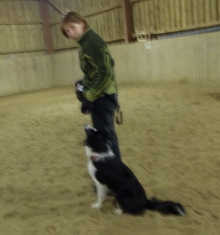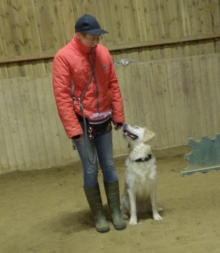 Dann stellte sich heraus, dass es nur ein anderes Wort für „Click und Wurst“ ist, „Fuss“ und „Sitz“ und „Platz“ und so ein Zeug – ich durfte sogar was vormachen. Immer ein großer Schritt und wieder in die Fuss-Grundposition, cool!