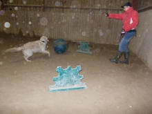 Als alle so richtig untergeordnet waren, holte sich jeder einen großen Gummiball – Treibball stand auf dem Programm: Verstehe Welpen bekommen kleine Bälle im Bällebad zum Baden und große Hunde bekommen Treibbälle zum Treiben. Und was bekomme ich? Die Chefin hielt mir mit den Worten „Der passt zu Dir“ einen unkaputtbaren Ferkelball vor die Nase. Ich habe das blöde Teil geflissentlich ignoriert, was heißt denn hier Ferkel?
