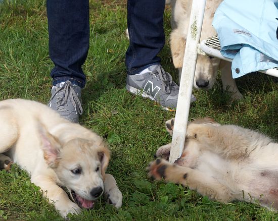 3 kleine Retriever-Jungs hatten mächtig Spaß miteinander und ganz egal, ob bei Regen oder Sonnenschein, die Ausgelassenheit und die Freude der Kleinen hat uns alle immer fröhlich gemacht.