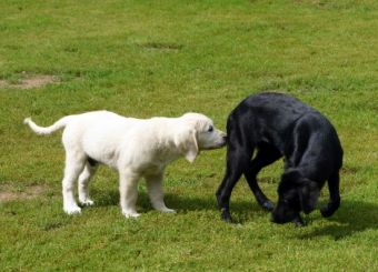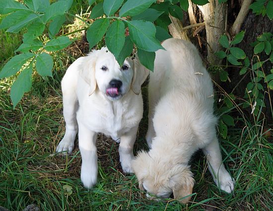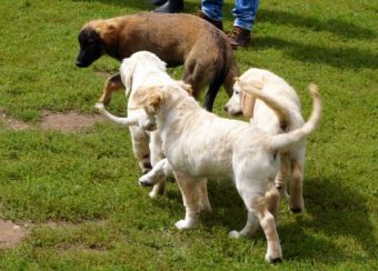 … während Carino zielsicher die Welpen herausfand, die noch vorsichtiger waren als er selbst und dann mutig auftrumpfte – seine Geschwister fanden ihn sehr beeindruckend!