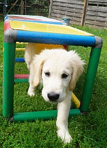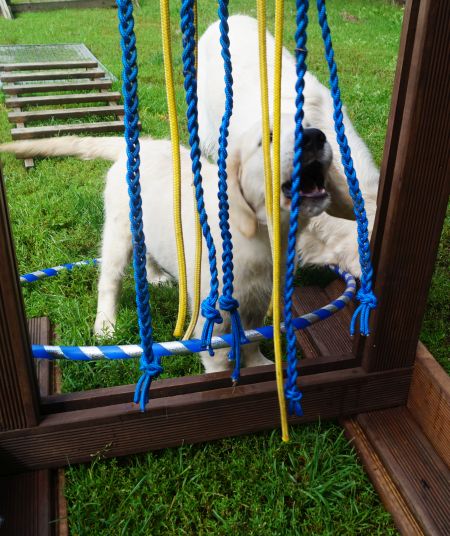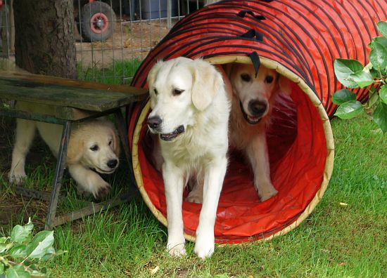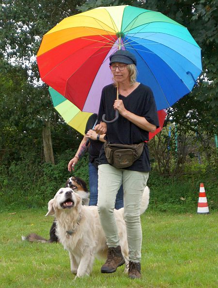 Soviel Spaß, dass der Tunnel durch die Gegend kullerte und den Abgrenzungszaun umriss, woraufhin die Chefin völlig genervt rummeckerte: „Ihr Trampel – ihr kriegt auch alles kaputt!“ Verstehe ich nicht, ich dachte der Spass-Parcours war für uns Hunde!?