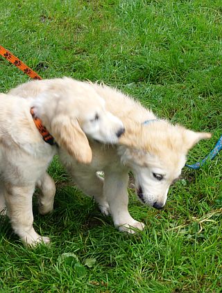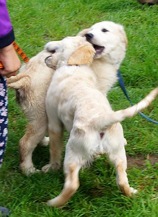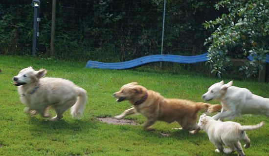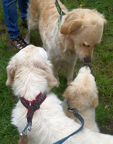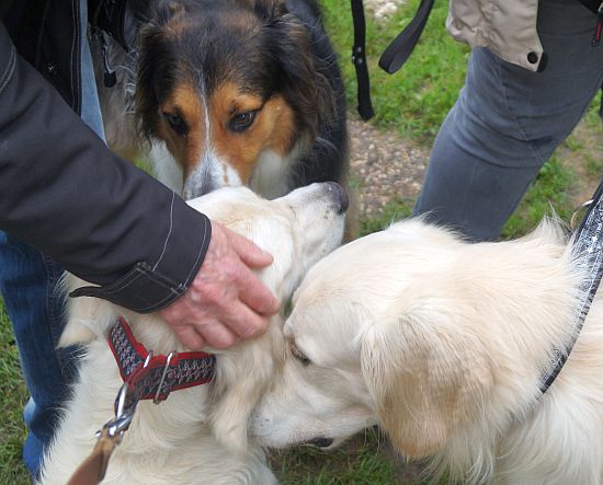Simba traf zu ihrer großen Freude Bruder Knut und Kumpel Dobby, die sie länger nicht gesehen hatte. Am liebsten hätten sie auch gleich los gespielt, aber als erwachsene Hunde durften sie sich natürlich nicht gehen lassen - manchmal ist es so blöd, erwachsen zu werden.