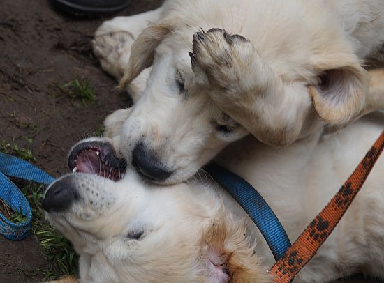 Und Schwesterchen Mailie kam – das war für unseren kleinen Mann bestimmt das Ober-Highlight der Party! Sie sind sich gleich um den Hals gefallen und konnten gar nicht mehr von einander lassen. Vergessen waren die vielen Menschen und die anderen Hunde, die Welpen machten ihre eigene Mini-Party!