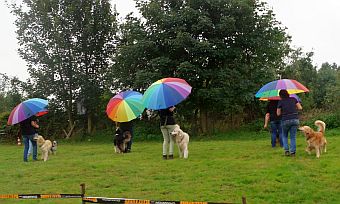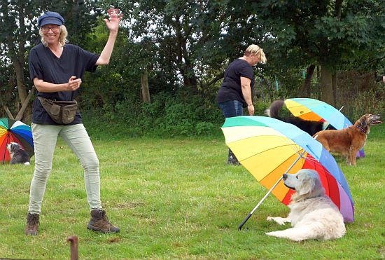 Am Freitag Abend hatten die Chefin und ihre Freunde aufgebaut und wir Hunde haben natürlich alles kritisch überprüft und für gut befunden (Okay, Ginger wollte mitten auf der Vorführwiese ein Loch buddeln und wurde ziemlich angemeckert, aber eigentlich waren wir die Kontrolleure),