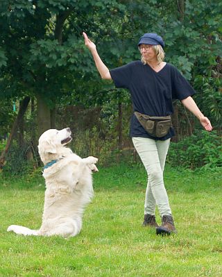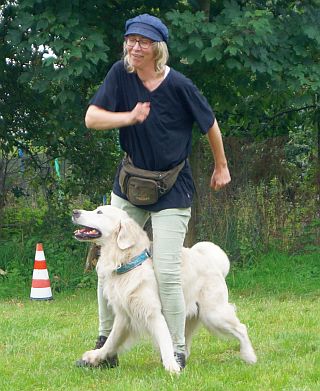 Zuerst musste ich allerdings zuschauen, denn es begann mit der großen Obedience-Formation, bei der viele Freunde und auch zu meinem Stolz die schöne Allegra teilnahmen. So toll sind die Hunde auf und ab und quer und kreuz gelaufen – das sich keiner verlaufen hat, war wie ein Wunder!
