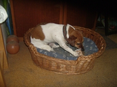 Der kleine Korb in der Küche ist weiterhin einer meiner Lieblingsschlafplätze, aber ich scheine langsam rauszuwachsen.