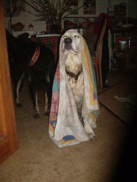 Alle meine Gäste waren auch sehr lustig, Bosse wollte auch baden und hat einen alten Holzpfosten abgenagt, Jack hat alle die es wollten oder auch nicht wollten angerammelt, nur Ginny, die alte Frostbeutle, ist mißmutig hinterher gezockelt.