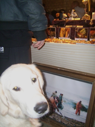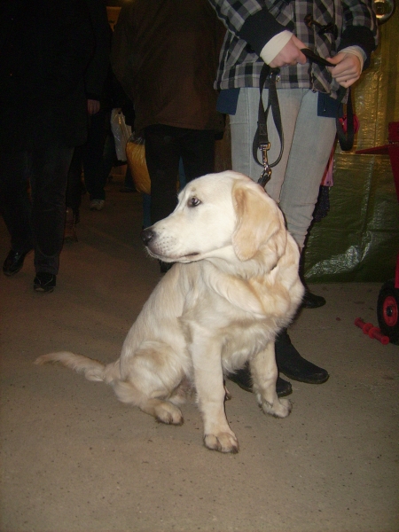 Mir waren die Leute ja völlig schnurtz, meine Leckerchen-Quote stimmte und die Chefin passte auf, dass mir keiner auf die Pfoten trat. Aber eine entzückende Jack-Russell-Maus mit Fledermausohren war völlig panisch und versuchte ihre Leute hektisch zum Ausgang zu zerren. Einem Ridgeback schaute die Rute fast schon vor der Brust raus und ein gemixter Border Collie schlich ganz verstört hinter seinen Leuten her. Ich glaube die Leute sollten mal echt überlegen, ob sie ihrem hund einen Gefallen tun, wenn sie ihn zu so einem Kuddelmuddel mitnehmen: Tausend Gerüche, zehntausend verschiedene Geräusche und überall unzählige Lichter und Lampen.