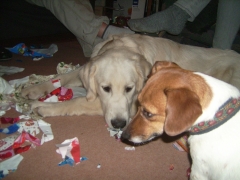 Alle waren glücklich, nur Jack, der Hibbelmors, war viel zu aufgeregt um zu essen. Er hat dann mein zweites Geschenk geklaut und heimlich in seinen Korb getragen.