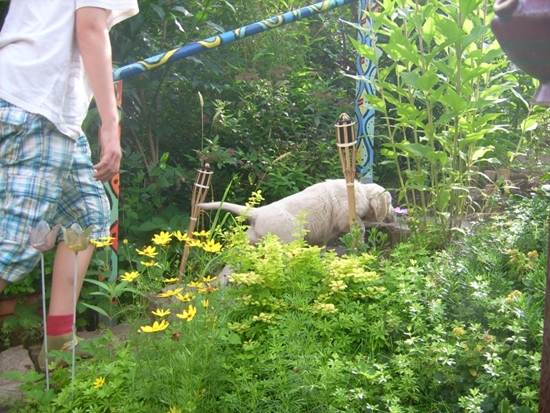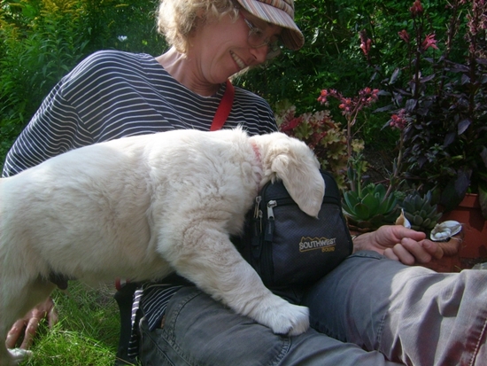Eigentlich wollte ich ja auf Entdeckungstour gehen. „Der Gartenzaun ist doch dicht“, fragte die Chefin ud bevor Omi noch „aber sicher“ antworten konnte, war ich schon im Nachbargarten. Auf einmal waren alle ganz aufgeregt und haben mit hoher Stimme gerufen und gejodelt, da bin ich lieber wieder zurückgekommen.