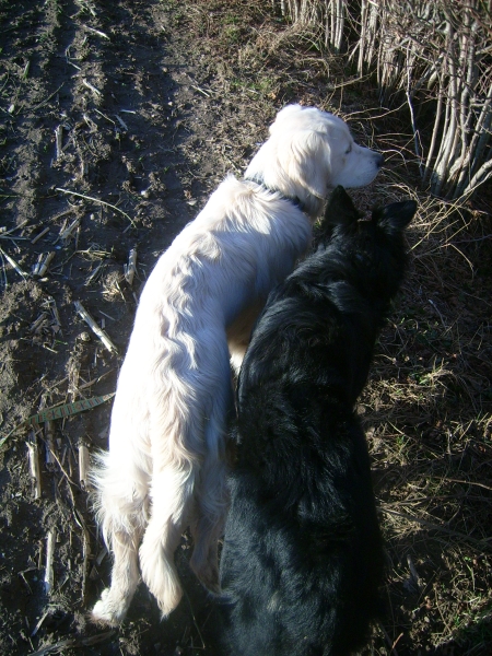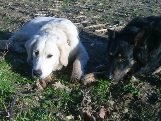 Bosse und Ginny genießen den Vorfrühling ganz besonders – endlich keine Mäntel mehr und die alten Knochen von Bosse werden wieder richtig munter, wenn die Sonne scheint! Manchmal muss die Chefin den alten Herrn ganz schön bremsen, damit er sich beim Toben nicht völlig übernimmt.