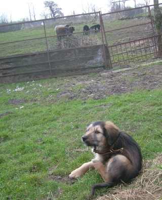 Als Merlin sich bei den Schafen nicht ganz wohl fühlte, (vielleicht hat ihn auch einfach nur sein Halsband gejuckt), habe ich mich groß und breit neben ihn gestellt. Dann fühlte er sich gleich viel besser (er hörte zumindest auf sich zu kratzen).