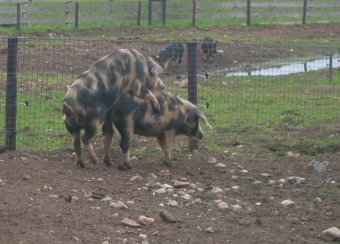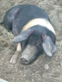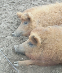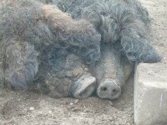 Aber irgendwie hörte es gar nicht mehr auf – wir trafen immer mehr Schweine: „Bunte Bentheimer Schweine“, „Angler Sattelschweine“ und „Orange Mangalitza Wollschweine“ – so eine Schweinerei! Alle waren vom Frühling wie besessen, d.h. sie machten Liebe, kuschelten und umrüsselten sich und immer wieder schrien und quiekend sie ganz fürchterlich.