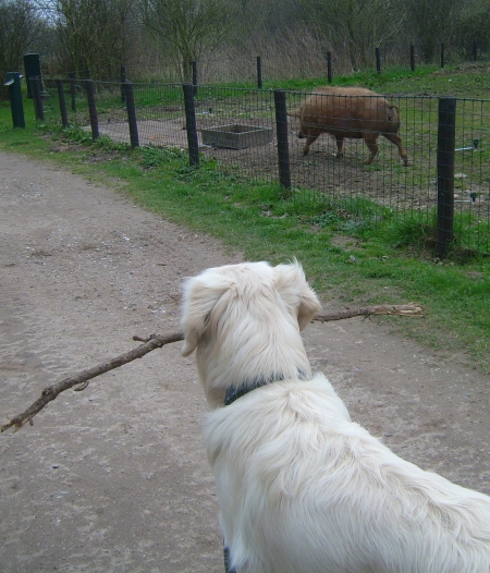 Das war bestimmt ein Retriever, der hier sein Leben lassen musste, einer, den vielleicht auch jemand für ein englisches Parkrind gehalten hatte, oder einer, der die Schweine zu sehr mit seinem Stock geärgert hatte!!