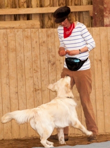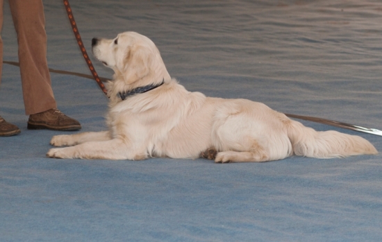 Danach traten eine ganze Reihe meiner guten Freunde auf, die auch anscheinend alle Dogdancer sind. Lea und Lilly und sogar mein großer Freund Mogli sprangen und stolzierten über den blauen Teppich, was die alles können! Ich dachte immer, wir Retriever holen im Wesentlichen Enten aus dem Wasser, aber da habe ich jetzt meinen Horizont deutlich erweitert – ich will das auch alles können!
