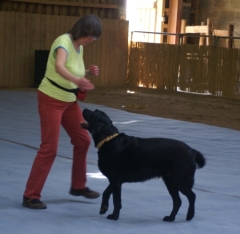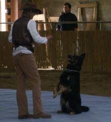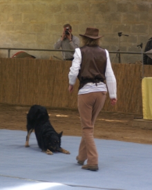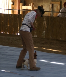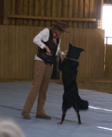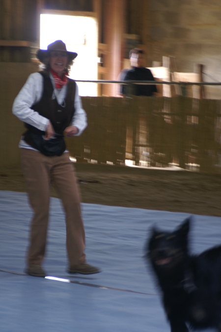 Da half kein Rufen und kein Säuseln, schwupps war er weg. Aber Jack wäre nicht Jack, wenn er die Sache nicht wieder gut gemacht hätte: Zur großen Erheiterung des Publikums sprang er nämlich genauso flott wieder zurück in den Vorführring und nun ging es, wenn auch etwas holperig mit der Western-Musik zur Sache.