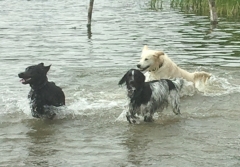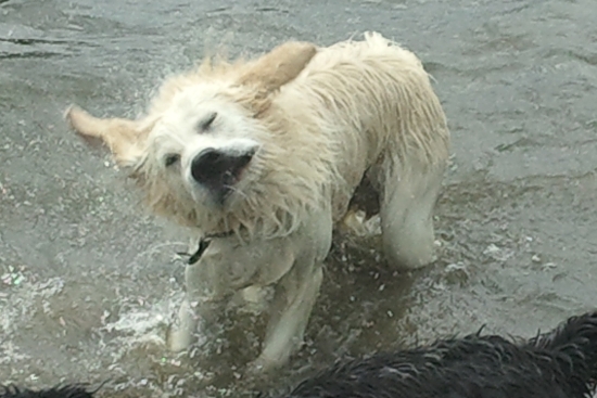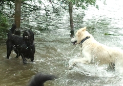 Hundeausstellungen sind ja gut und schön, aber so eine Wassertoberei ist doch das Höchste der Gefühle! Hier bin ich Hund, hier will ich sein!