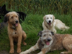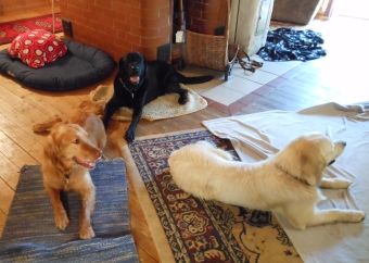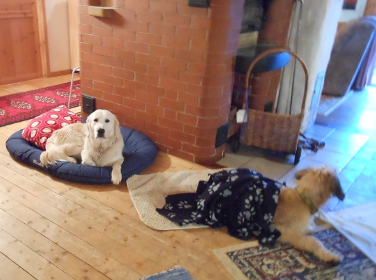 Im Haus hatten sie allerdings nicht so den Durchblick. Streng sollten wir auf irgendwelchen Laken Platz machen, obwohl wir alle lieber unter dem Tisch gelegen hätten. Merlin testete einmal kurz das Sofa, aber das war schon gar nicht erlaubt.