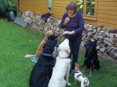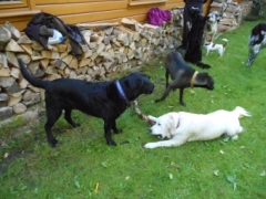 Im Garten gab es ein paar einladende Stöcke, noch mehr Leckerchen und wer mochte bekam ein paar Kirschen gepflückt. Ich finde, wir haben es mit unseren Menschen gut getroffen, sie denken sich immer wieder nette Dinge für uns aus.