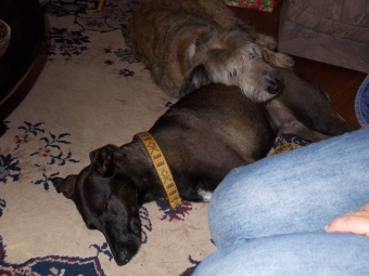 Beleidigt habe ich mich dann in Moglis Körbchen begeben, das sich dann aber als sehr bequem und kuschelig erwies – ein gelungener Abschluss für eine schöne Hundeparty: alles pennte tief und fest.