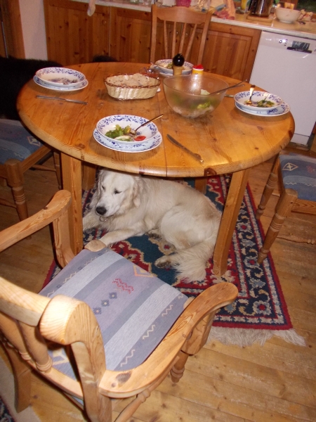 Als die Chefs einmal kurz abgelenkt waren, hatte ich es doch geschafft unter den Tisch mit den leckeren Dingen zu kommen. Ich machte mich ganz klein und hielt mich für völlig unauffällig, aber irgendwie haben sie es doch gemerkt und mich gleich wieder rausbefördert – Menschen können solche Spassverderber sein.